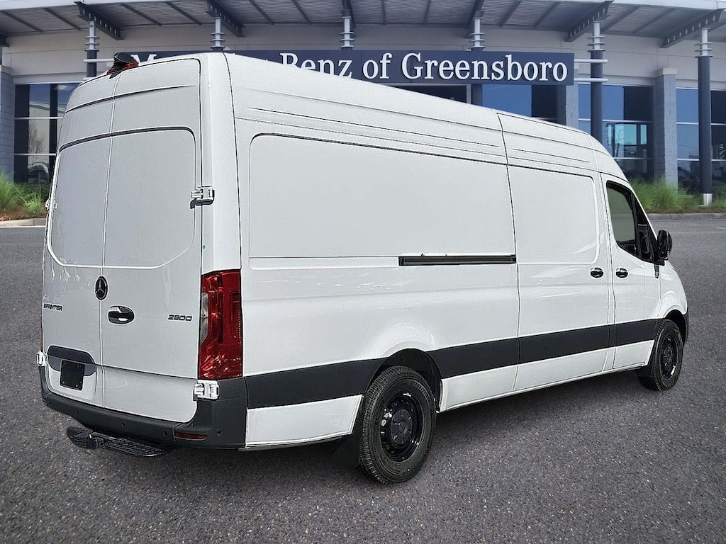 2025 Mercedes-Benz Sprinter 2500 3D Cargo Van Cargo 170 WB Mercedes-Benz of Greensboro is proud to present you with another True Market Priced Vehicle. This 2025 Mercedes-Benz Sprinter 2500 Cargo 170 WB Cargo Van is loaded with the following Factory Options:16" x 6.5J Steel Wheels, 3.923 Axle Ratio, 4-Wheel Disc Brakes, 5 Speakers, ABS brakes, Air Conditioning, AM/FM radio, Armrest for Driver's Seat, Armrest for Front Passenger's Seat, Bodyside moldings, Brake assist, Co-Driver Thorax-Pelvis Sidebag, Driver door bin, Driver's Seat Mounted Armrest, Driver's Seat Occupancy Sensor, Dual front impact airbags, Dual front side impact airbags, Electronic Stability Control, Emergency communication system, Exterior Parking Camera Rear, Front anti-roll bar, Front Bucket Seats, Front Passenger Airbag, Front wheel independent suspension, Fully automatic headlights, Heated door mirrors, Heated Driver's Seat, Heated front seats, Illuminated entry, Low tire pressure warning, Maturin Fabric Upholstery, No Factory Installed Flooring, Outside temperature display, Overhead airbag, Overhead console, Passenger door bin, Passenger seat mounted armrest, Power door mirrors, Power steering, Power windows, Radio: Standard, Rain sensing wipers, Remote keyless entry, Speed control, Standard Driver Seat, Standard Front Passenger Seat, Steering wheel mounted audio controls, Tachometer, Tilt steering wheel, Traction control, and Variably intermittent wipers. Arctic White