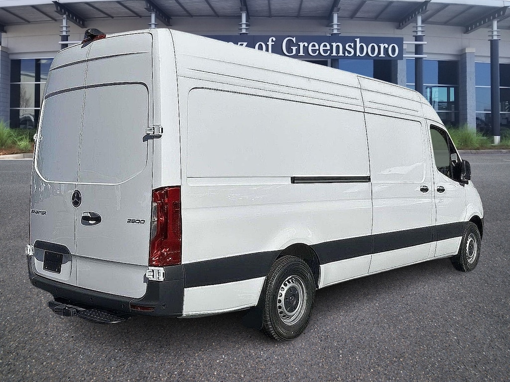 2025 Mercedes-Benz Sprinter 2500 3D Cargo Van Cargo 170 WB Mercedes-Benz of Greensboro is proud to present you with another True Market Priced Vehicle. This 2025 Mercedes-Benz Sprinter 2500 Cargo 170 WB Cargo Van is loaded with the following Factory Options:16" x 6.5J Steel Wheels, 3.923 Axle Ratio, 4-Wheel Disc Brakes, 5 Speakers, ABS brakes, Air Conditioning, AM/FM radio, Armrest for Driver's Seat, Armrest for Front Passenger's Seat, Bodyside moldings, Brake assist, Co-Driver Thorax-Pelvis Sidebag, Driver door bin, Driver's Seat Mounted Armrest, Driver's Seat Occupancy Sensor, Dual front impact airbags, Dual front side impact airbags, Electronic Stability Control, Emergency communication system, Exterior Parking Camera Rear, Front anti-roll bar, Front Bucket Seats, Front Passenger Airbag, Front wheel independent suspension, Fully automatic headlights, Heated door mirrors, Heated Driver's Seat, Heated front seats, Illuminated entry, Low tire pressure warning, Maturin Fabric Upholstery, No Factory Installed Flooring, Outside temperature display, Overhead airbag, Overhead console, Passenger door bin, Passenger seat mounted armrest, Power door mirrors, Power steering, Power windows, Radio: Standard, Rain sensing wipers, Remote keyless entry, Speed control, Standard Driver Seat, Standard Front Passenger Seat, Steering wheel mounted audio controls, Tachometer, Tilt steering wheel, Traction control, and Variably intermittent wipers. Arctic White