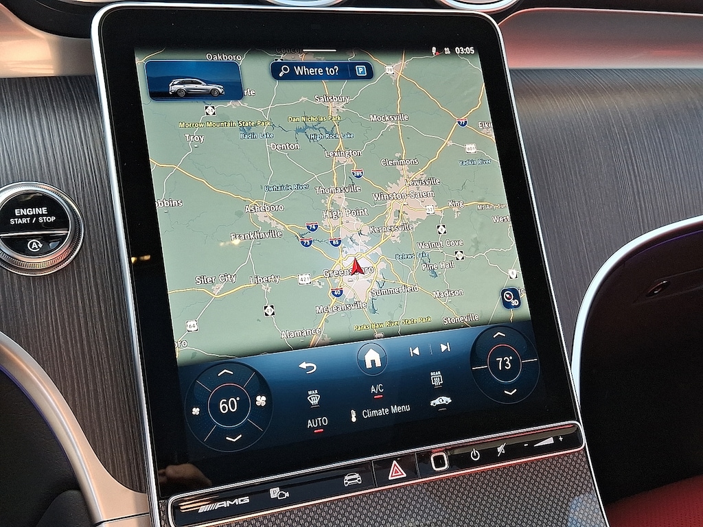 2026 Mercedes-Benz GLC 4D Sport Utility GLC 43 AMG® Mercedes-Benz of Greensboro is proud to present you with another True Market Priced Vehicle. This 2026 Mercedes-Benz GLC GLC 43 AMG® SUV is loaded with the following Factory Options:11.9" Center Touchscreen Display, 4-Wheel Disc Brakes, 8 Speakers, ABS brakes, Adaptive suspension, Air Conditioning, Alloy wheels, AM/FM radio: SiriusXM, Apple CarPlay®/Android Auto®, Auto High-beam Headlights, Auto tilt-away steering wheel, Auto-dimming door mirrors, Auto-dimming Rear-View mirror, Auto-leveling suspension, Automatic temperature control, Brake assist, Bumpers: body-color, Child-Seat-Sensing Airbag, Compass, Delay-off headlights, Driver door bin, Driver vanity mirror, Dual front impact airbags, Dual front side impact airbags, Electronic Stability Control, Emergency communication system: eCall Emergency System, Exterior Parking Camera Rear, Four wheel independent suspension, Front anti-roll bar, Front Bucket Seats, Front Center Armrest, Front dual zone A/C, Front reading lights, Fully automatic headlights, Garage door transmitter: HomeLink, Genuine wood dashboard insert, Head restraints memory, Heated door mirrors, Heated front seats, Heated steering wheel, Illuminated entry, Knee airbag, Leather steering wheel, Low tire pressure warning, MB-Tex/Microfiber Upholstery, Memory seat, Occupant sensing airbag, Outside temperature display, Overhead airbag, Overhead console, Panic alarm, Passenger door bin, Passenger vanity mirror, Power adjustable front head restraints, Power door mirrors, Power driver seat, Power Heated Front Bucket Seats, Power Liftgate, Power moonroof: Panoramic, Power passenger seat, Power steering, Power windows, Premium audio system: MBUX, Radio data system, Radio: 3rd Generation MBUX, Rain sensing wipers, Rear anti-roll bar, Rear fog lights, Rear reading lights, Rear seat center armrest, Rear window defroster, Rear window wiper, Remote keyless entry, Security system, SiriusXM Satellite Radio, Speed control, Speed-sensing steering, Split folding rear seat, Spoiler, Sport steering wheel, Steering wheel memory, Steering wheel mounted audio controls, Tachometer, Telescoping steering wheel, Tilt steering wheel, Traction control, Trip computer, Turn signal indicator mirrors, Variably intermittent wipers, Wheels: 20" AMG® Twin 10-Spoke, Wireless Android Auto®, and Wireless Apple CarPlay®. 040