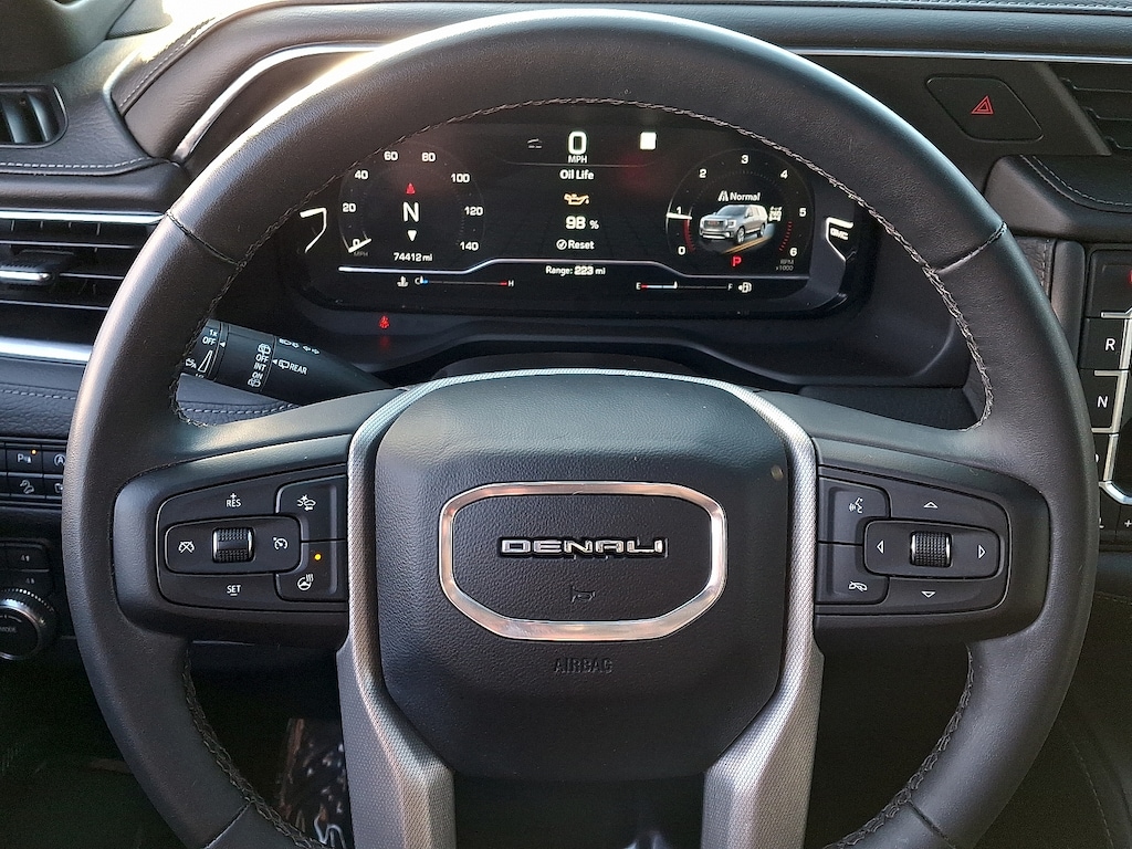 The Yukon Denali's commanding presence is matched by its exceptional performance. Powered by a 3.0L I6 engine and paired with a 10-speed automatic transmission, this SUV delivers a smooth, responsive ride with impressive fuel efficiency, achieving up to 26 MPG on the highway.